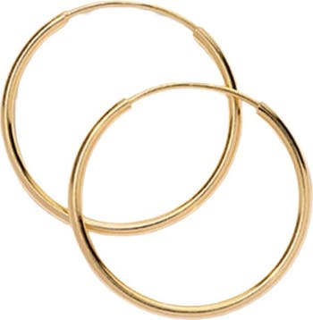 Classic and contemporary, this elevated version of our customer favorite Live In Hoops is as good as gold. Each pair of infinity-style hoops is crafted from 14k solid gold and designed to be put in and left in as long as you like. Go ahead and infuse a little indulgence in your everyday lineup with a shimmery statement. Delivered from the Made by Mary studio in a giftable book-style box, each piece is carefully crafted with your story in mind. Find your fit: • Small — 12mm • Medium — 16mm