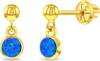 Delicate and dreamy, these round opal charm earrings are the sweetest accessory for any little girl who loves a touch of sparkle. The glittering opal charms gently dangle from 14k yellow gold settings, catching the light with every movement. Designed with comfort and safety in mind, they are hypoallergenic and ideal for girls with sensitive skin. The secure screw back closures provide a snug, worry free fit, making them a beautiful and practical choice for everyday wear or special occasions. A small gift box is included with purchase.