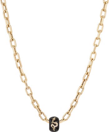This 14-karat-gold chain necklace features a glossy ceramic bead set with a dragon symbol and embellished in sparkling hand-set pavé diamonds.