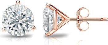 14k Rose Gold Lab-Grown Round Diamond 3-Prong Stud Earrings