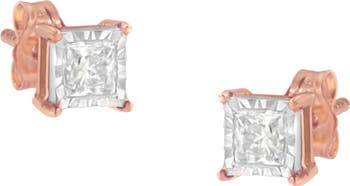 14K Rose Gold Plated Silver 1/2 Ct Princess Diamond Solitaire Stud Earrings