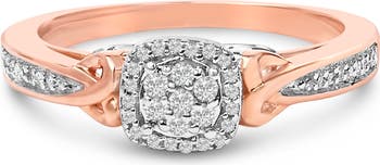 14K Rose Gold Plated Sterling Silver 1/6 Cttw Diamond Knot Cluster Ring