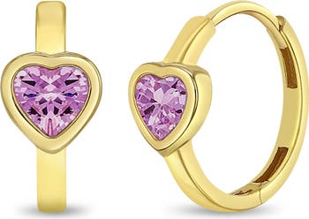 These exquisite hoop earrings, designed specifically for little girls, showcases a elegant touch of love. Crafted from 14k yellow gold, they exude a warm radiance that complements any outfit. At the center of each hoop rests a single cubic zirconia heart shaped stone, adding a subtle sparkle that captures the imagination. The dainty size and lightweight nature of these earrings make them an ideal choice for girls with sensitive ears, ensuring comfort and confidence throughout the day. Gift Box included.