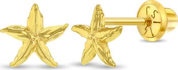 These adorable starfish-shaped earrings are the cutest accessory for your little one! Crafted from high-quality 14k yellow gold, they offer both elegance and durability for everyday wear. The intricate starfish design adds a touch of sea life magic, making them a charming addition to any outfit. With secure screw-back closures, they are a safe fit for young ears, providing peace of mind while adding a delightful pop of shine. These earrings make a thoughtful gift for any special occasion, offering both beauty and functionality. A gift box is included with purchase.