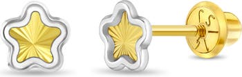 Brighten up your little one’s look with these enchanting flower-shaped earrings. Designed in a stunning two-tone combination of 14K yellow and 14k white gold, they feature intricate diamond-cut etching for a touch of sparkle. Crafted with comfort and safety in mind, these lightweight earrings are secured with 14K yellow gold screw-back closures, ensuring a snug and reliable fit. Whether for a special occasion or everyday wear, this dazzling pair makes a lovely gift that she’ll cherish. A gift box is included with purchase.