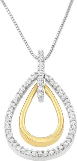Haus of Brilliance 14K Two-Tone Gold Round Cut Diamond Double Burst Pendant Necklace, Main, color, Yellow