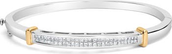 14K Two-Toned Gold Princess Cut Diamond Fashion Bangle