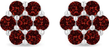 14K White Gold 1.0 Ct Red Diamond Prong 7 Stone Floral Stud Earrings