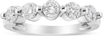 14K White Gold 1.00 Cttw Round Cut Diamond 5-Stone Band Ring