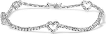 14K White Gold 1 1/2 Cttw Diamond Heart Station Strand Bracelet - 7.5 Inches