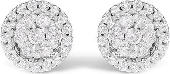 14K White Gold 1/2 Ct BrilliantDiamond Halo-Style Cluster Button Stud Earrings