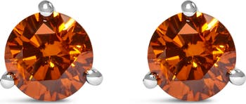 14K White Gold 1/2 Ct Lab-Grown Orange Diamond 3-Prong Martini Stud Earrings