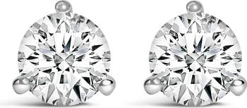 A timeless jewelry essential, these white diamonds studs will bring unparalleled sparkle to your ears. These elegant lab grown diamond stud earrings feature a 3 prong martini setting in a glistening 14k white gold metal. The 2 round, brilliant lab-grown diamonds radiate a beautiful white sparkle as they float within the four-prong setting of these 14k white gold stud earrings. Each lab-grown diamond is crafted to the highest standards and has an approximate VS1-VS2 clarity and F-G color making them essentially flawless to the naked eye. The studs feature dazzling round-cut lab-grown diamonds, with each diamond weighing approximately 1/4 carat, for a total combined diamond weight of 1/2 carat for the pair. The earrings are secured with screwbacks. The 14k white gold is rhodium-plated, giving the earrings an extra layer of durability and enhancing the bright, lustrous finish, ensuring long-lasting shine and resistance to tarnishing.