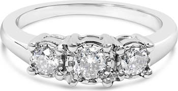 14K White Gold 1/2 Cttw Diamond Three Stone Illusion Plate Ring