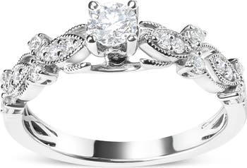 14K White Gold 1/2 Cttw Diamond Vintage Style Engagement Ring