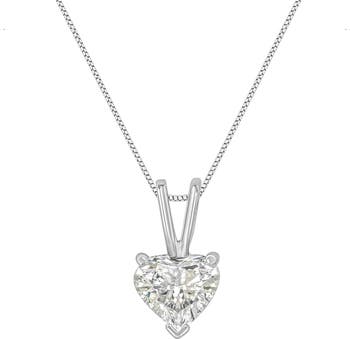 An elegant heart-shaped diamond is the brilliant focal point of this solitaire necklace for her. Set in 14K white gold, the diamond suspends from an 18-inch cable chain that secures with a spring ring. The simplicity of a perfect diamond will outlast every other piece you own. A brilliantly cut heart shaped diamond emanates pure elegance and love in its gold setting. Goes with anything you care to pair it with – another reason why you'll never want to take this one off. This sweet necklace makes a perfect Valentine's Day gift, or as a way to remember someone close to your heart. It's a classic and feminine piece she'll want to show off every day.