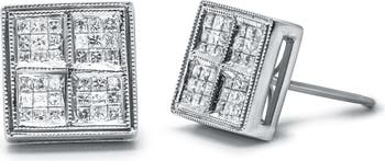 A unique twist on a classic design, these 1/2 c.t. studs are beautifully crafted in 14k white gold. Four square clusters of natural, princess-cut diamonds make up the design of these stunning earrings. This piece has a push back mechanism for a safe and secure fit on your ears. You will love how these composite diamond studs shine and add a touch of glamour to your look!