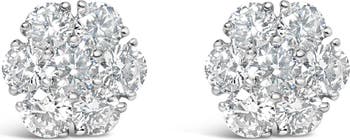 Haus of Brilliance 14K White Gold 1 3/4 Ct Lab Grown Diamond Floral Cluster Composite Stud Earring, Main, color, White
