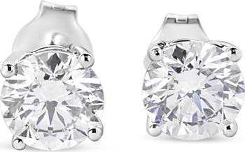 A timeless jewelry essential, these white diamonds studs will bring unparalleled sparkle to your ears. These elegant lab grown diamond stud earrings feature a 4-prong basket setting in a glistening 14k white gold metal. The 2 round, brilliant lab-grown diamonds radiate a beautiful white sparkle as they float within the four-prong setting of these 14k white gold stud earrings. Each lab-grown diamond is crafted to the highest standards and has an approximate VS2-SI1 clarity and F-G color making them essentially flawless to the naked eye. The studs include dazzling round-cut lab grown diamonds with a total weight of 1 3/4 carat and come with push backs for a secure and comfortable fit.