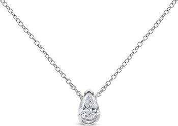 14K White Gold 1/3 Cttw Pear Shape Solitaire Diamond 18" Pendant Necklace