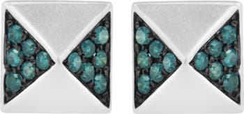 14K White Gold 1/4 Ct Blue Diamond Pyramid Stud Earring