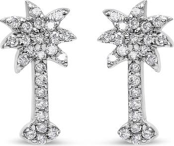 Remind her of the beach with these sparkling and tropical diamond palm tree stud earrings. Crafted in from cool white 14K gold , each shimmering earring features a gleaming trunk and dazzling shady fronds. Radiant with 1/4ct. t.w. of diamonds and a brilliant buffed luster, these dainty stud earrings secure comfortably with friction backs.