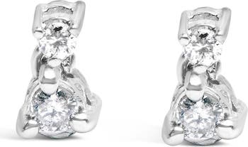 14K White Gold 1/4 Ct Double Diamond Drop and Dangle Stud Earrings