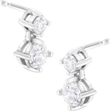 14K White Gold 1 cttw Double Diamond Stud Earrings