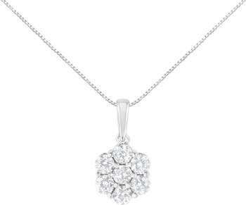 14K White Gold 2.00 Cttw Brilliant Diamond 7 Stone Flower Cluster Pendant Necklace