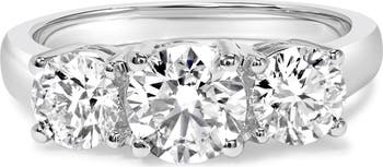 14K White Gold 2.00 Cttw Lab Grown Diamond 3 Stone Ring Band