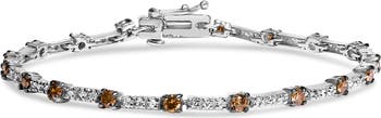 Imbued with the sublime elegance of the evening sky, this 14k white gold bracelet glimmers with a captivating arrangement of natural champagne and white diamonds, totaling 2 1/4 cttw. Each champagne diamond, colored like fine aged brandy, is meticulously set in a rhodium-plated bar link structure, enhancing the lustrous finish and adding a touch of refined luxury. The clear sparkling white diamonds provide a dazzling contrast, each crafted to radiate light with an I1-I2 clarity, encasing the wrist in a spectrum of shimmering light. Measuring 7 inches, this piece clasps securely with a box tongue and safety latch, promising to adorn the contours of your wrist with unmatched grace and security. Ideal for those cherished moments, it transforms every gesture into a statement of sophisticated poise.