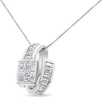 14K White Gold 2 cttw Princess and Baguette Cut Diamond Double Loop Pendant Necklace
