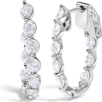 14K White Gold 3 3/4 Cttw Graduating Diamond Oval Hoop Earrings