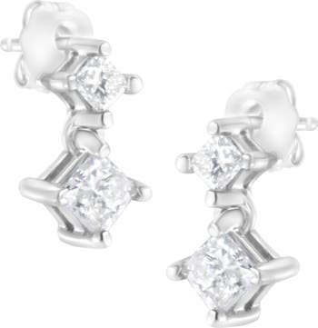 Accent your look with this chic pair of stud earrings. Composed of precious 14k white gold, these gorgeous earrings are finely burnished to shine. Further, the embellishment with flickering princess cut diamonds in a prong setting giving this piece a timeless appeal. This pair of earrings comes with push back screw on a mechanism so that they get fit on ears securely.