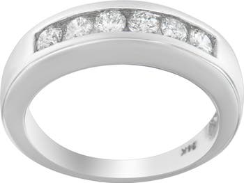 Bring more sophistication and style to your party look with this wonderful diamond band. Crafted out of 14k white gold, this fashion ring is lined with dazzling round-cut diamonds. Framed in channel settings, these diamonds are so captivating that it can fetch the attention of every onlooker.