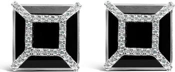 14K White Gold 3/8ct Diamond with Black Onyx Stud Earrings