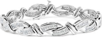 14K White Gold 4.0 Cttw Invisble Set Princess-Cut Diamond Wave Style Link Bracelet