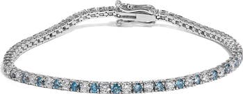 14K White Gold 4.0 Cttw White and Blue Lab Grown Diamond Tennis Bracelet
