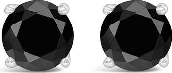 Elegant and timeless, these gorgeous 14K white gold solitaire stud earrings feature bold and beautiful heat treated, color enhanced black diamonds. The earrings feature screwback closures. The notched posts and friction backs keep these pierced earrings safe and secure on your ears for comfortable, worry-free wear all day long. This authentic design is crafted of real 14 karat gold, a precious metal that will keep a tarnish-free shine for years to come. These reimagined classic stud earrings make a great gift for any special occasion! Diamonds are thought to give the wearer clarity and illuminate solutions to life’s problems. These stud style earrings are subtle enough for casual affairs but sparkle in formal settings as well. Coordinate these earrings with your favorite diamond necklace or other diamond jewelry to create a complete elegant ensemble. Each ear piece features a 2.5 carat round, treated black diamond for a total weight of 5 carats.