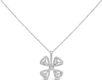 Haus of Brilliance 14K White Gold 5/8 Cttw Diamond 4 Leaf Floral Pendant Necklace, Main, color, White