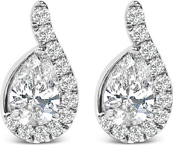 14K White Gold 5/8 Cttw Lab Grown Diamond Tear Drop Halo Stud Earring