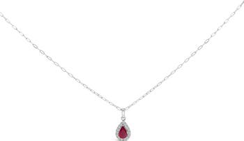 Haus of Brilliance 14K White Gold 6x4 Pear Red Ruby and Diamond Halo Pendant Necklace, Main, color, White