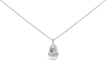 Embrace the tender beauty of life's sweetest moments with this exquisitely crafted pendant. Shaped into an endearing baby shoe, this charming piece is a testament to the delicate art of fine jewelry-making. Forged from lustrous 14K white gold, it sparkles with the brilliance of diamond accents, each stone naturally sourced and impeccably selected for their radiant G-H color and enchanting SI1-SI2 clarity. Every glance captures the tiny bow detail, a subtle yet profound touch of sweetness that amplifies its heartfelt aesthetic. Suspended from an elegant 18-inch box chain, also in 14K white gold, the pendant promises both grace and security with a reliable spring clasp. The entire piece benefits from rhodium plating, ensuring a lasting luster that keeps pace with life's precious milestones.