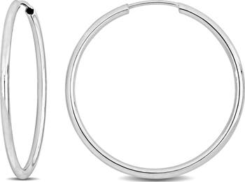 Embrace timeless elegance with these 25mm hoop earrings crafted in 14k white gold. Their classic design offers a sleek and polished look, perfect for everyday wear or special occasions. The versatile hoops add subtle sophistication and effortless style to any outfit. Simple, refined, and enduring, these earrings blend classic beauty with modern charm.
