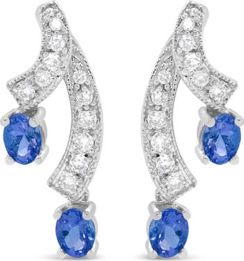 These unique earrings are sure to turn heads. Each earring features two ribbons of diamond accented 14K White Gold weaving through down your ear. The diamond studded ribbons end with 4 beautiful, natural blue tanzanite stones. Radiating a glorious blue hue, the oval shaped tanzanite stones on these white gold drop earrings look simply enchanting. The sparkling diamond accents above the oval-shaped gems and the unique ribbon twist design further elevate their unmatched aura.