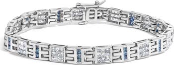 Haus of Brilliance 14K White Gold Princess 3.00 cttw Blue Diamond Link Bracelet, Main, color, White