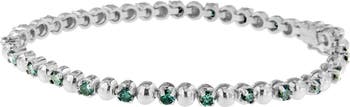 Say it vintage-styled, glamorous, or sparkling - this fabulous diamond tennis bracelet has it all. Crafted of rich 14 karats white gold, the dazzling design features an embellishment with royal and shimmering blue round cut diamonds. Every astonishing detailing radiates a brilliant buffed luster and makes it twinkle like a star.