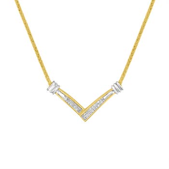 14K Yellow and White Gold 1/4 Cttw Diamond "V" Shape 18" Pendant Necklace