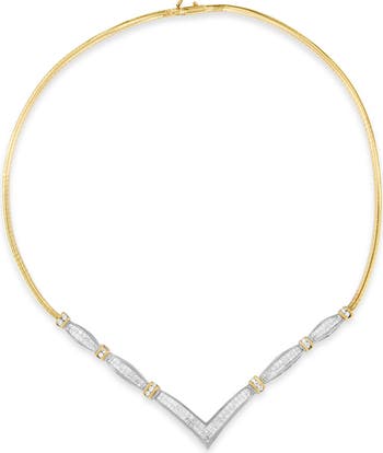 14K Yellow and White Gold 3.00 Cttw Diamond "V" Shape Statement Necklace