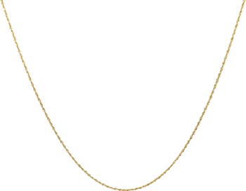 Elegant and versatile, this 14K yellow gold rope chain adds a touch of timeless sophistication. Measuring 16 inches long and 1mm wide, it’s crafted in solid gold with a classic twisted design and high-polish finish—perfect for layering or minimalist everyday wear.